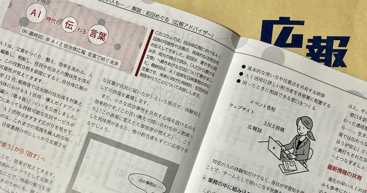 自治体広報担当者のための『月刊広報』4月号に連載「自治体発信〜AI時代の伝わる言葉」最終回が掲載されました。